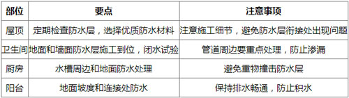 下面用表格來對比一下不同部位防水處理的要點和注意事項: